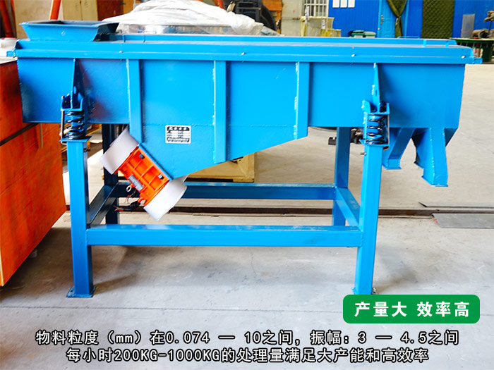 它作為一臺小型號的直線振動篩,可篩分的物料粒度(mm)在0.074 — 10之間,振幅:3 — 4.5之間,每小時200KG-1000KG的處理量滿足大產(chǎn)能和高效率!