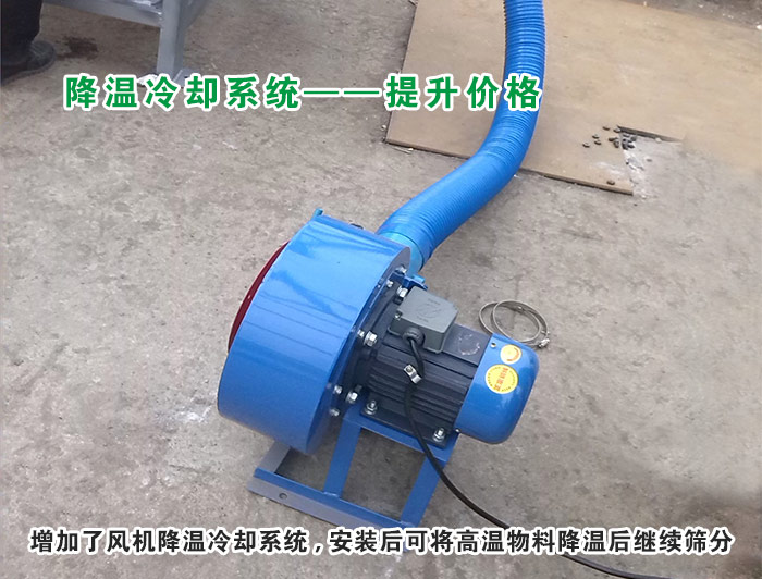降溫直線振動(dòng)篩是在大漢生產(chǎn)的DZSF系列直線振動(dòng)篩的基礎(chǔ)上,增加了風(fēng)機(jī)降溫冷卻系統(tǒng)的新型直線振動(dòng)篩,安裝后可將高溫物料降溫后繼續(xù)篩分,這樣一臺(tái)風(fēng)機(jī)降溫冷卻系統(tǒng)的價(jià)格在幾百到上千元不等,這是降溫直線振動(dòng)篩加高提升的一個(gè)方面。