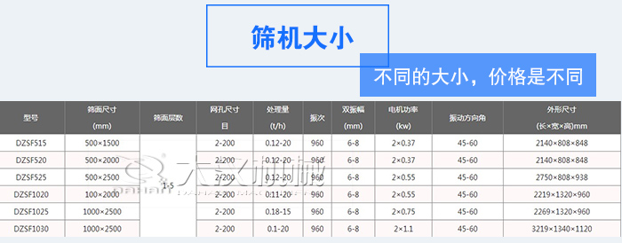 影響價格因素一:篩機大小