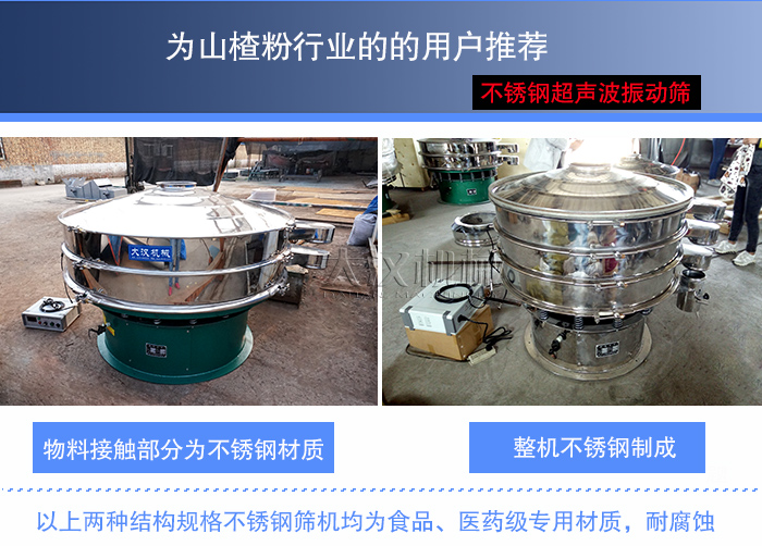 以上是大漢小編為您帶來的關于山楂粉超聲波振動篩報價分析,篩分山楂粉,就選大漢超聲波振動篩!歡迎各位新老用戶前來廠區(qū)是實地考察,大漢機械竭誠為您服務~