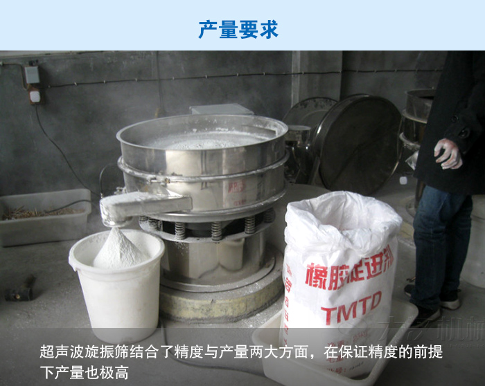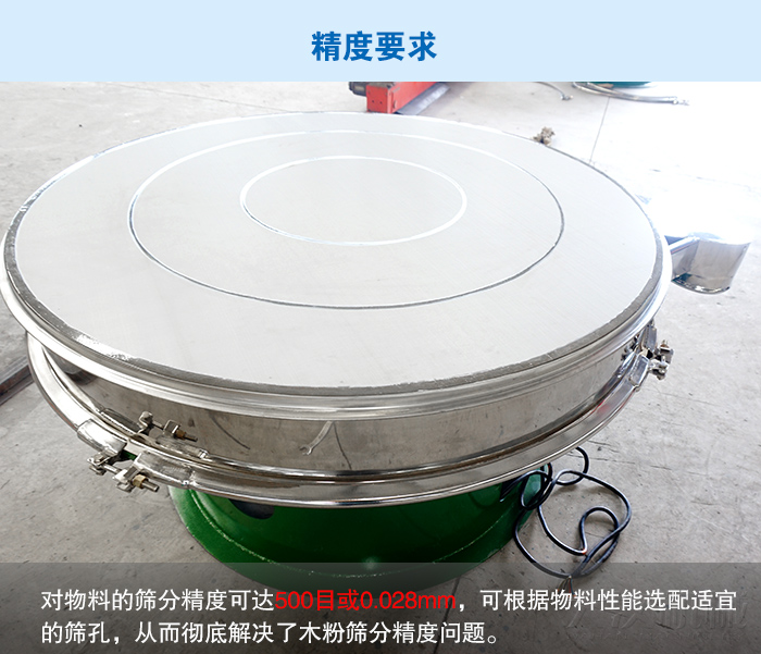 解決方法:超聲波旋振篩具有體積小、結(jié)構(gòu)簡(jiǎn)單合理、篩分精度高、維修方便、保養(yǎng)簡(jiǎn)單、篩網(wǎng)壽命長(zhǎng)等優(yōu)點(diǎn)。可單層或多層使用,可達(dá)到五層,對(duì)物料的篩分精度可達(dá)500目或0.028mm,可根據(jù)物料性能選配適宜的篩孔,從而解決了木粉篩分精度問(wèn)題。