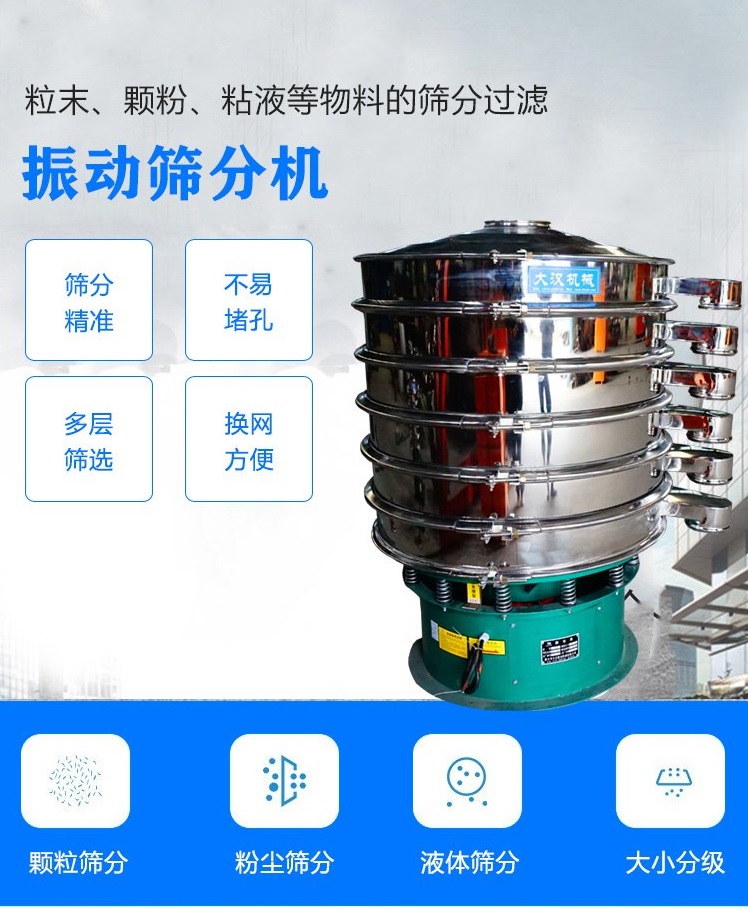 振動篩分機用于批次分級或粉末和液體的安全篩選,它從您的粉末和液體中去除過大的污染物,也可以準確地分離您的粉末和顆粒它可以分為不同的尺寸,并且可以分類濕或在一次操作中干燥多達 6 個級別的材料。廣泛應用于食品飲料、醫(yī)藥、粉末涂料、金屬粉末、化工、農(nóng)業(yè)、塑料等行業(yè)。